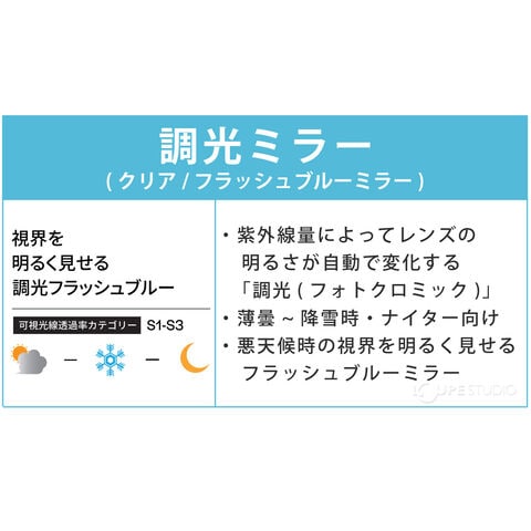 | レンズカラー | 調光ミラー(クリア/フラッシュブルーミラー)5477 |