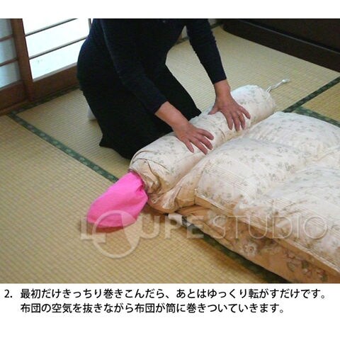 掃除機不要で、驚きの圧縮を実現!適度な通気で羽毛布団を優しく収納!狭い空間にもスルリと押し込める!