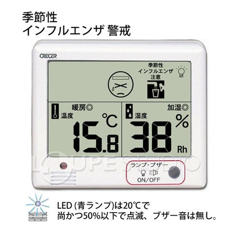 より注意の場合、LED点滅(青)で警告。(+湿度50%未満)