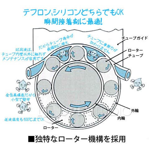 - 独自の特殊ローター機構により、チューブに摩擦力を与えないためチューブの寿命が飛躍的に増大します。
