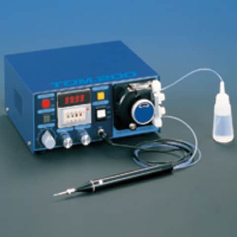 チュービングディスペンサーTOM.200は、独自のローター機構とバキューム機構により吐出後の材料硬化や液ダレのないチューブ式ディスペンサーで特にシアノ系瞬間接着剤などの嫌気性接着剤等に適しています。テフロンチューブ及び、シリコンチューブのどちらでも使用可能ですのであらゆる液体の定量吐出、定量供給に使用できます。