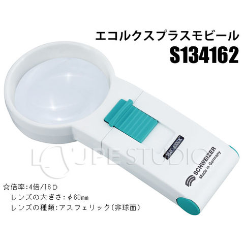 虫眼鏡 シュバイツァー 手持ち型ライト付ルーペ [拡大鏡] エコルクスプラスモビール 16D [4倍] φ60mm シュバイツァ S134162 SCHWEIZER 弱視スペック