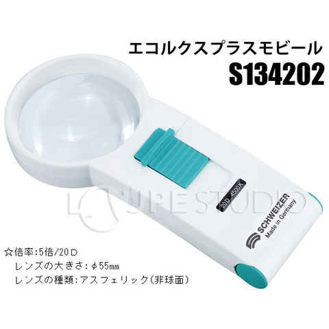 虫眼鏡 シュバイツァー 手持ち型ライト付ルーペ [拡大鏡] エコルクスプラスモビール 20D [5倍] φ55mm シュバイツァ S134202 SCHWEIZER 弱視