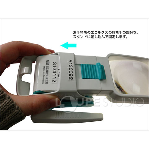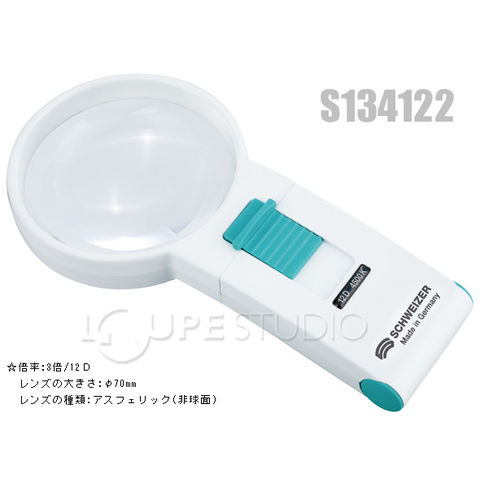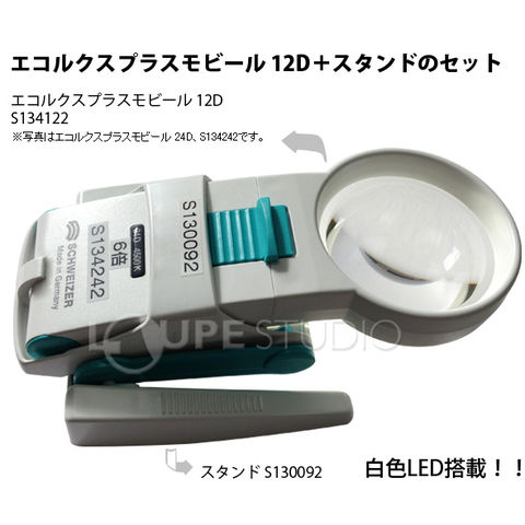 虫眼鏡 LEDライト付 ルーペ [拡大鏡] エコルクスプラスモビール 12D+スタンドのセット [3倍] φ70mm S134122-92 シュバイツァー 弱視の方に SCHWEIZER シュバイツァスペック