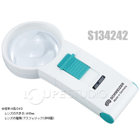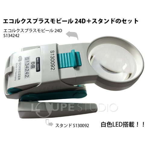 虫眼鏡 LEDライト付 ルーペ [拡大鏡] エコルクスプラスモビール 24D+スタンドのセット [6倍] φ55mm S134242-92 シュバイツァー 弱視の方に SCHWEIZER シュバイツァスペック