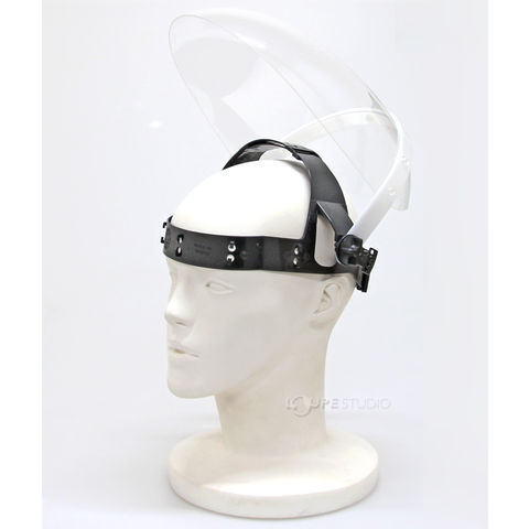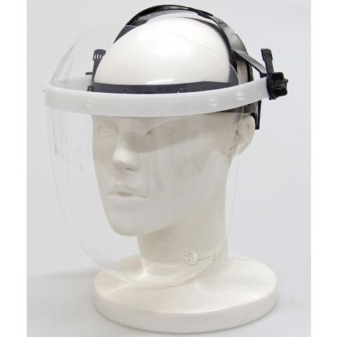 シールド仕様アクリル球面カーブ+ヘッドギア付き、内面防曇処理シールド