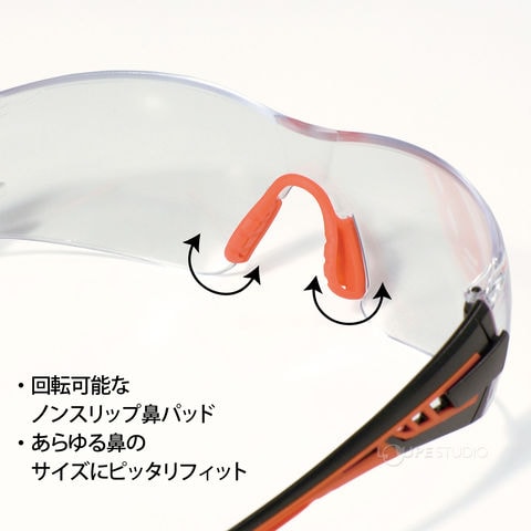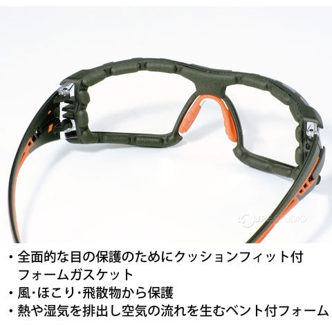 - フレーム内側全周にEVAスポンジ「ガスケット付き」で隙間ができにくい、スポーティーなデザインの保護めがねです。
