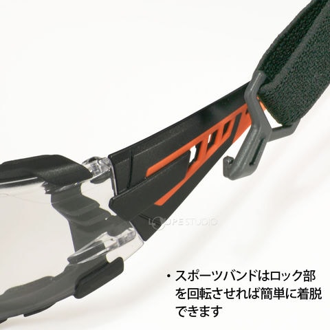 - 付属の「幅広スポーツバンド」をテンプル部にセットすれば、ズレ、外れを防止でき「簡易ゴーグル」のような使い方ができます。