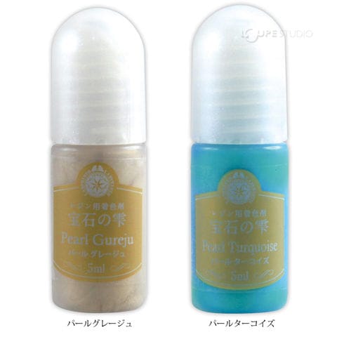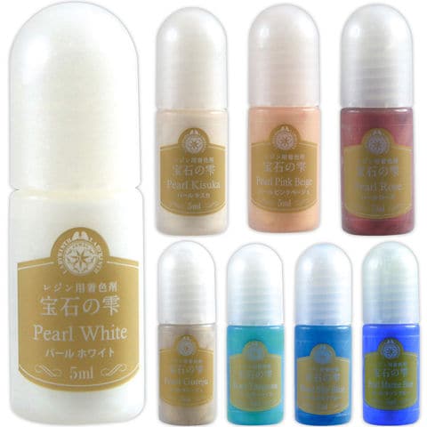 レジン専用の液体着色剤。宝石の雫パールシリーズは、レジンと混ぜるのはもちろん、専用アタッチメントを付ければ上から直接ポンポンと塗れるようになりました。本物のパールのような美しさをご堪能ください。