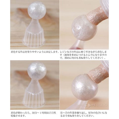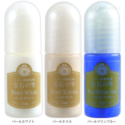 レジン専用の液体着色剤。宝石の雫パールシリーズは、レジンと混ぜるのはもちろん、専用アタッチメントを付ければ上から直接ポンポンと塗れるようになりました。本物のパールのような美しさをご堪能ください。