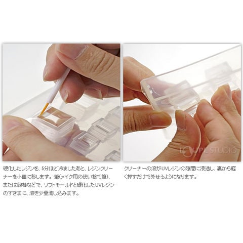 レジンクリーナーを使う事で、型離れが良くなり、未硬化のUVレジンも掃除できるので一石二鳥です。