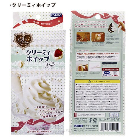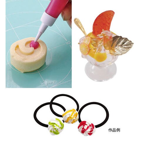 ホイップクリームのように絞り口を使ってデコレーションできるクリーム状の粘土です。表面はよりマットな質感で、リアルなホイップクリーム風の装飾ができます。とても柔らかく、乾燥するまでは水に溶けるお手入れの簡単さと、乾燥後の耐水性を持ち合わせています。