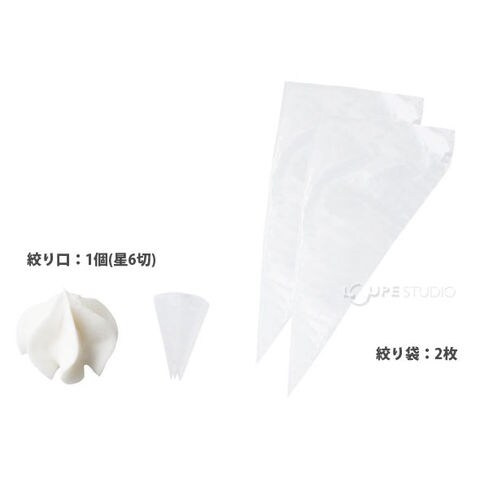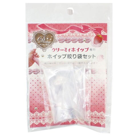 絞り袋2枚と絞り口1個がセットになった、クリーミィホイップ専用のホイップ絞り袋セットです。
