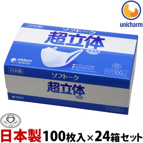 マスク 日本製 ユニチャーム 全国マスク工業会 使い捨てマスク ユニ・チャーム ソフトーク超立体マスク ふつうサイズ100枚入×24箱セット 耳が痛くない 息がしやすい 息苦しくない 蒸れない