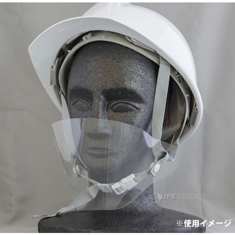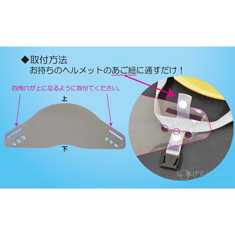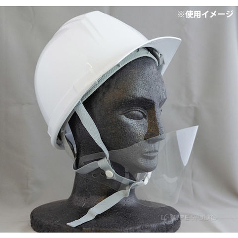 - ヘルメットのあご紐に通すだけで飛沫感染対策になります。