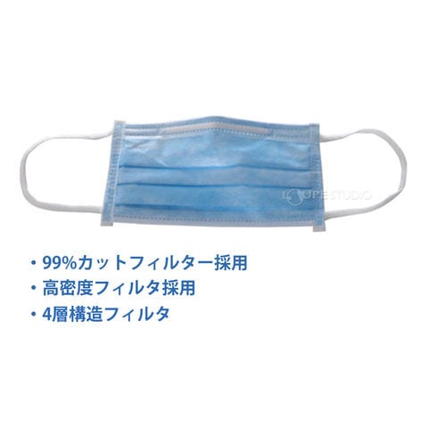 医療用マスクの素材条件であるASTM(米国試験材料協会)規格に準拠している4層構造のプリーツタイプサージカルマスクです。安心の日本製、プリーツタイプ(ノーズフィット付き)です。