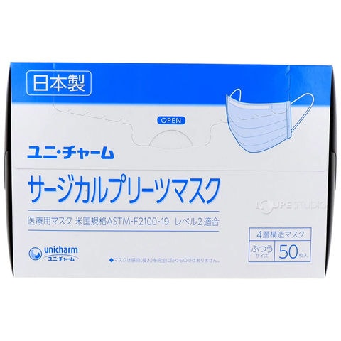 マスク 日本製 不織布 使い捨てマスク ユニチャーム 箱 大容量 ユニ・チャーム サージカル プリーツマスク ふつうサイズ 青 50枚入り 医療用 ウイルス対策のレビュー