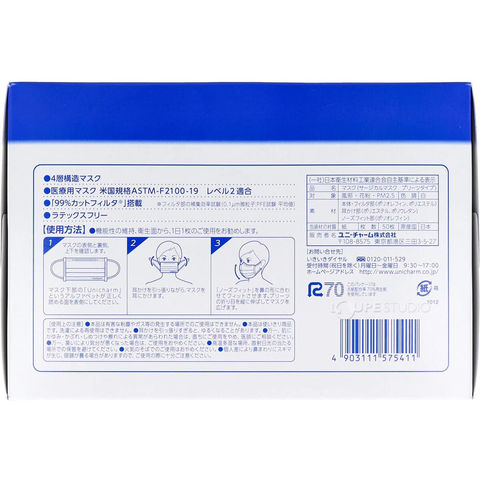 仕様米国規格ASTM-F2100-19レベル2適合、耳掛けタイプ、個包装なし
