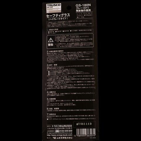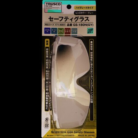 オーバーグラスタイプ TRUSCO トラスコ中山 一眼型セーフティグラス 上ひさしサイド付 グレー [GS-180N GY] 販売単位:1