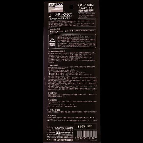 オーバーグラスタイプ TRUSCO トラスコ中山 一眼型セーフティグラス 上ひさしサイド付 黄 [GS-180N Y] 販売単位:1