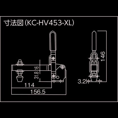 下方押え型 角田 ハンドル縦型トグルクランプ(下方押え型) No.HV453-XL 締圧力0.8~2.25kN [KC-HV453-XL] 販売単位:1