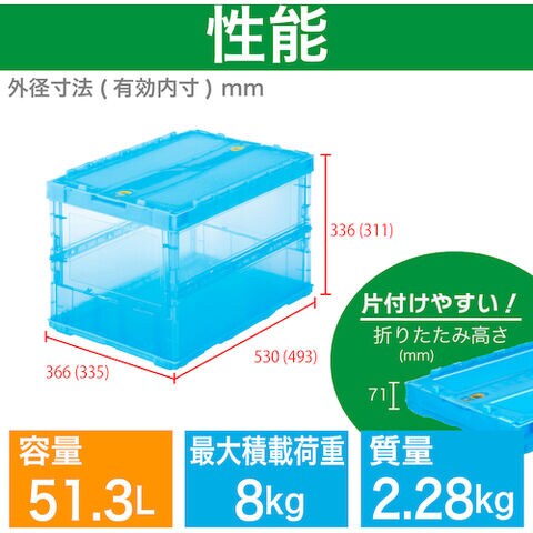 TRUSCO トラスコ中山 オリコン 薄型折りたたみコンテナ スケルコン 50L ロックフタ付 透明ブルー 青 [TSK-C50B B] 販売単位:1