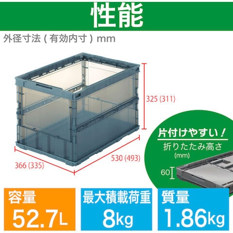 TRUSCO トラスコ中山 オリコン 薄型折りたたみコンテナ スケルコン 50L 透明ブラック 黒 [TSK-O50B BK] 販売単位:1