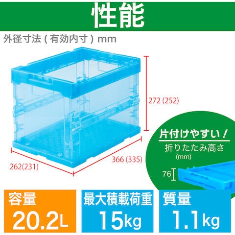 TRUSCO トラスコ中山 オリコン α折りたたみコンテナ スケルコン 20L 透明ブルー 青 [TR-S20B B] 販売単位:1