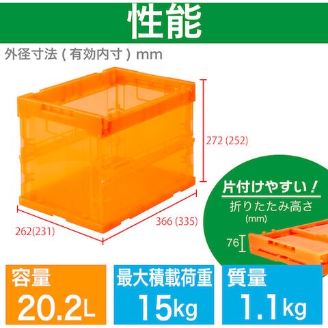 TRUSCO トラスコ中山 オリコン α折りたたみコンテナ スケルコン 20L 透明オレンジ オレンジ [TR-S20OR OR] 販売単位:1