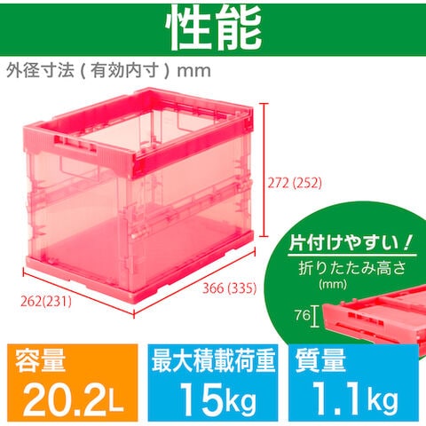 TRUSCO トラスコ中山 オリコン α折りたたみコンテナ スケルコン 20L 透明レッド 赤 [TR-S20R R] 販売単位:1