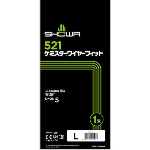 アラミド繊維 SHOWA 耐切創手袋 No521ケミスターワイヤーフィット イエロー Lサイズ [NO521-L] 販売単位:1