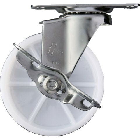 プレート式ステンレス金具キャスター ナイロン車 ハンマー Eシリーズオールステンレス 旋回式ナイロン車輪 100mm ストッパー付 [315E-N100] 販売単位:1