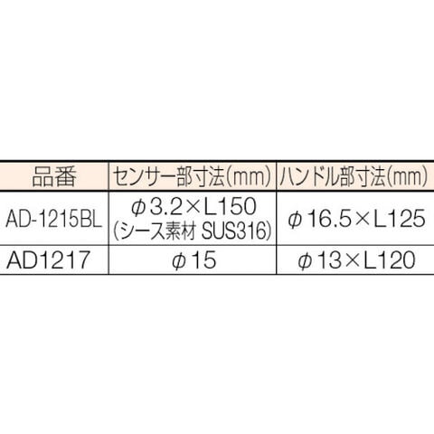 A&D 中心温度計 Kタイプ熱電対センサー 使用温度範囲-50~700℃ 棒状金属保護管絶縁形 [AD-1215] AD1215BL 販売単位:1 送料無料