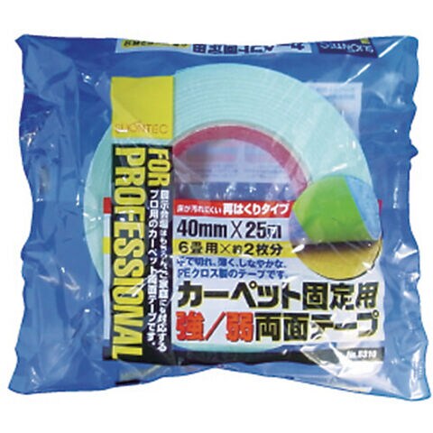 SLIONTEC 工業用・プロ用両面テープ 布両面テープ カーペット固定用 1面グリーン/2面ホワイト 40mm×25m 厚さ0.26mm [531005-00-40X25] 販売単位:1