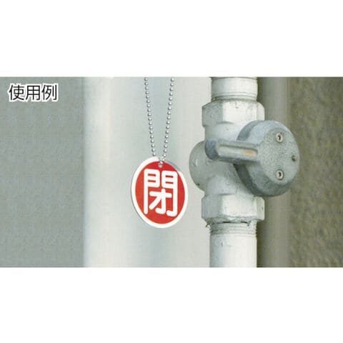 緑十字 バルブ開閉札 常時開(赤) 50mmΦ 両面表示 アルミ製 [157031] 販売単位:1