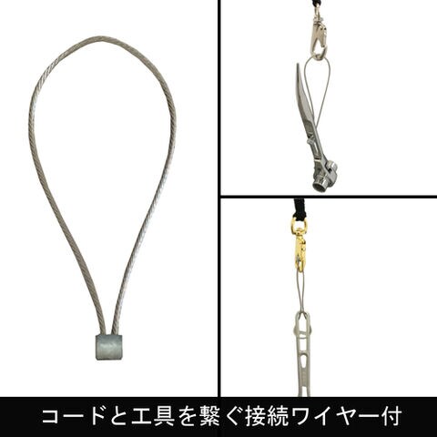 • コイルタイプと違い特殊縫製のヒモなので、作業時に衣類や腕を挟んだり絡まったりしにくくなっています。
