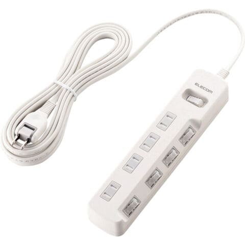 ELECOM オフィス用タップ 一括&個別スイッチ付 雷ガードタップ 4個口 5m 白 [T-K8A-2450WH] 販売単位:1 送料無料