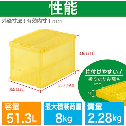TRUSCO トラスコ中山 オリコン 薄型折りたたみコンテナ スケルコン 50L ロックフタ付 透明イエロー 黄 [TSK-C50B Y] TSKC50B 販売単位:1