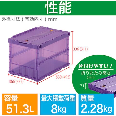 TRUSCO トラスコ中山 オリコン 薄型折りたたみコンテナ スケルコン 50L ロックフタ付 透明バイオレット 紫 [TSK-C50B VI] TSKC50B 販売単位:1