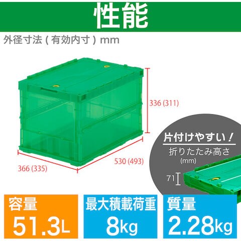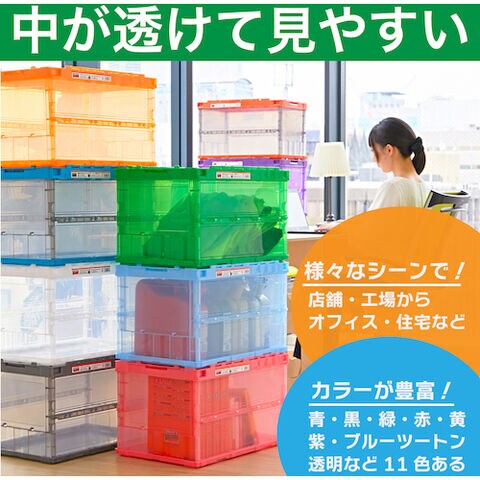 TRUSCO トラスコ中山 オリコン 薄型折りたたみコンテナ スケルコン 50L ロックフタ付 透明グリーン 緑 [TSK-C50B GN] TSKC50B 販売単位:1