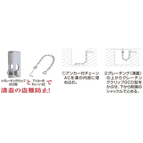 • グレーチングクリップTGCD型と一緒に使う事で、溝蓋の盗難防止に役立ちます。