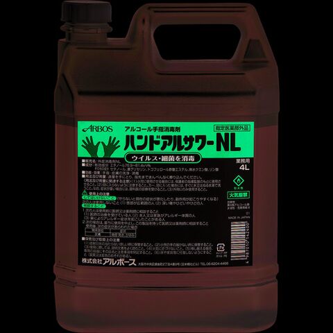 除菌 ウィルス対策 アルボース アルコール消毒液 ハンドアルサワーNL 4L [14240] 販売単位:1 送料無料