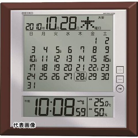 デジタル表示 SEIKO 液晶マンスリーカレンダー機能付き電波掛置兼用時計 茶メタリック塗装 [SQ421B] 販売単位:1 送料無料