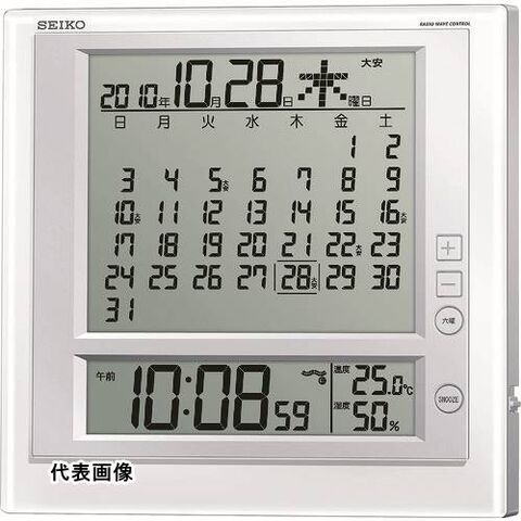 デジタル表示 SEIKO 液晶マンスリーカレンダー機能付き電波掛置兼用時計 P枠 白パール [SQ422W] 販売単位:1 送料無料