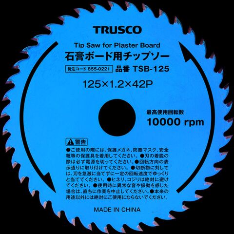 建材用 TRUSCO トラスコ中山 石膏ボード用チップソー Φ125 [TSB-125] 販売単位:1