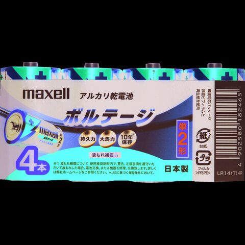 マクセル アルカリ乾電池 単2(4個入りパック) [LR14(T)4P] LR14T4P 販売単位:1