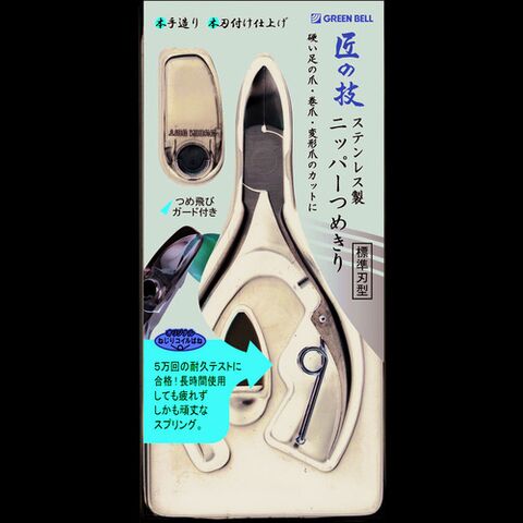 GREENBELL ステンレス製ニッパーつめきり つめ飛びガード付き 全長110mm [G-1050] G1050 販売単位:1