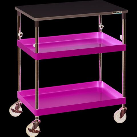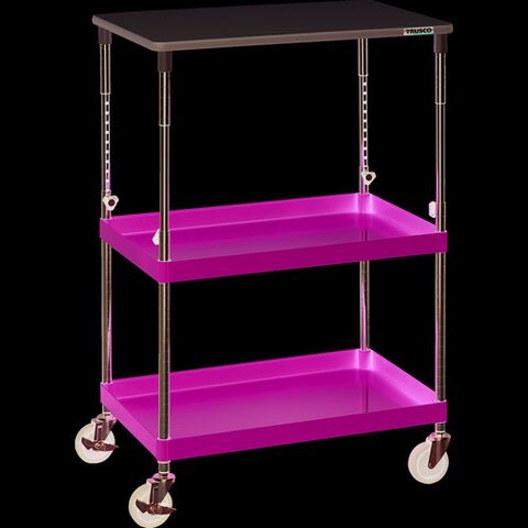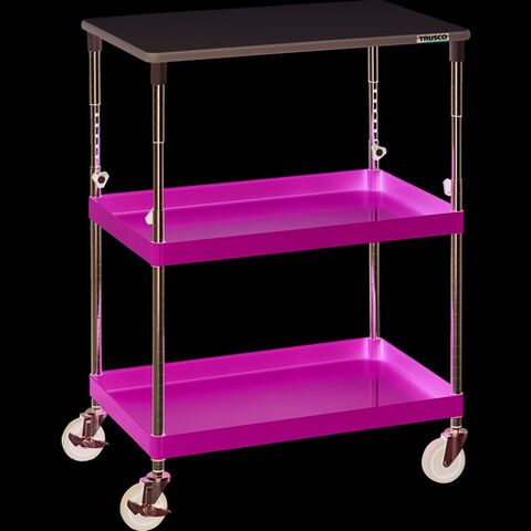 スチール製ワゴン ボルトレスタイプ TRUSCO トラスコ中山 ツールワゴン フェニックスワゴン 省音 750X500XH880~1130 天板付 ヤンググリーン [PEW-A972T-YG] PEWA972TYG 販売単位:1 送料無料
