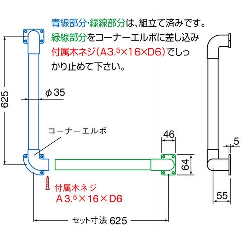 TRUSCO トラスコ中山 L型 丸棒手すり 35ΦX600 シルバ-ライトオ-ク [HBLR600-SO] HBLR600SO 販売単位:1 送料無料