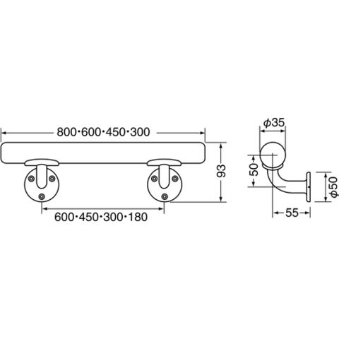 TRUSCO トラスコ中山 横型 ミニ手すり 35ΦX600 シルバ-ライトオ-ク [HBIY600-SO] HBIY600SO 販売単位:1